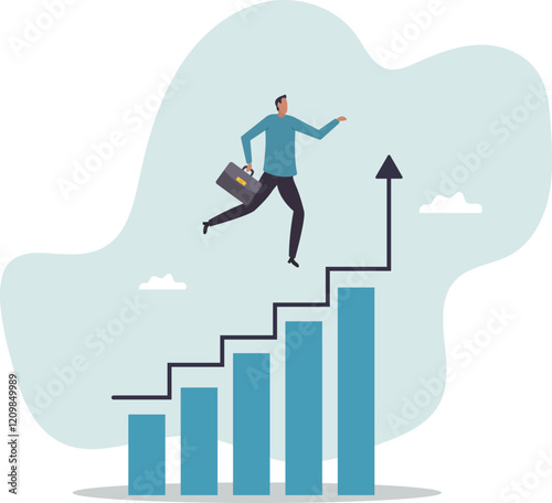 Progress or improvement to success, step forward to grow business, journey to achieve goal, ambition or career path .business concept.flat character.
