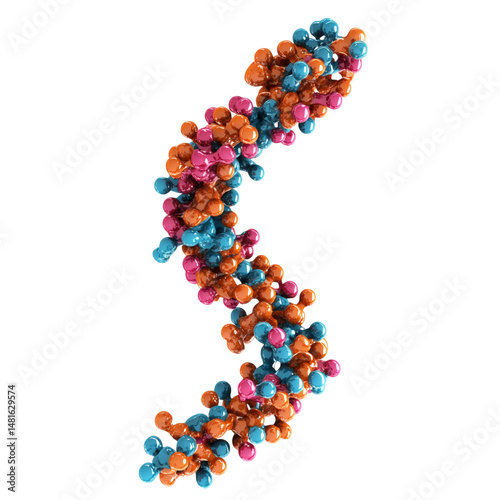 structure, molecular, protein, chain, spiral, organic, transparent, abstract, vibrant, colourful, blue, orange, pink, complex, detailed, science, biology, chemistry, shape, form, pattern, modern, dynamic, energy, growth, cellular, microscopic, isolated, white, elegant