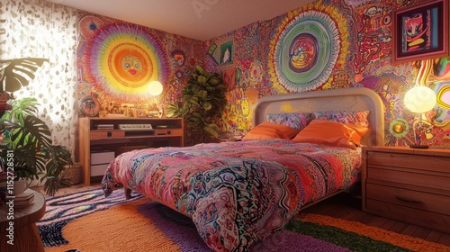 Psychedelic Bedroom Decor: Vibrant Tapestry and Bohemian Chic