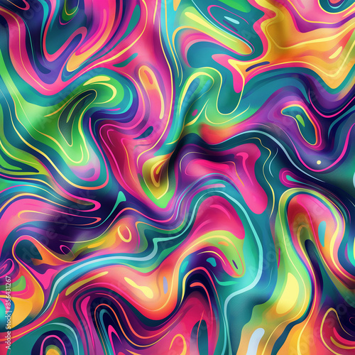 Psychedelic print for clothing featuring vibrant swirling patterns in neon colors