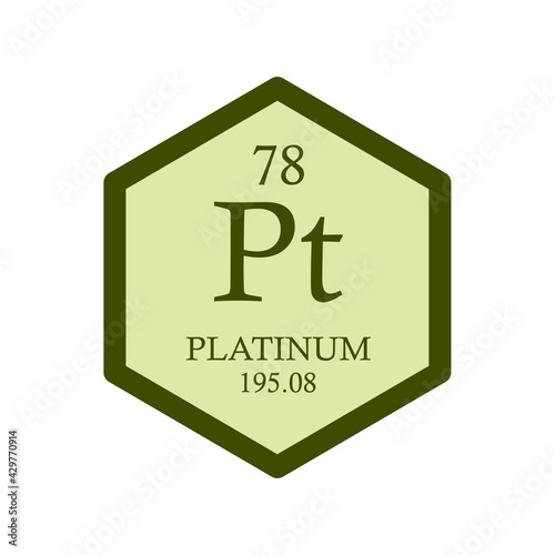Pt Platinum Transition metal Chemical Element Periodic Table. Hexagon vector illustration, simple clean style Icon with molar mass and atomic number for Lab, science or chemistry education.