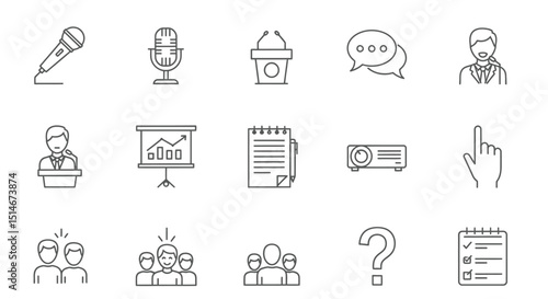 public, speaking, presentation, communication, icon, organisation, teaching, note, graphic, lead, visual, interaction, seminar, inspire, speaker, icon, set, vector, business, symbol, signs, web, computer, money, cyberspace, illustration, office, home, calendar, phone, bank, house