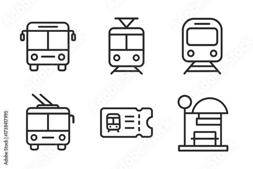 transportation, icon, bus, tram, train, streetcar, ticket, station, public, travel, commute, transit, urban, outline, simple, minimal, design, vehicle, rail, subway, symbol, collection, graphical, interface, signage, network, journey, mobility, infrastructure, city, vector, icon
