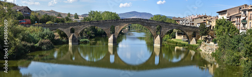 Puente la Reina, Spain - 31 Aug, 2022: Arches of the roman Puente la Reina foot bridge, Navarre, Spain
