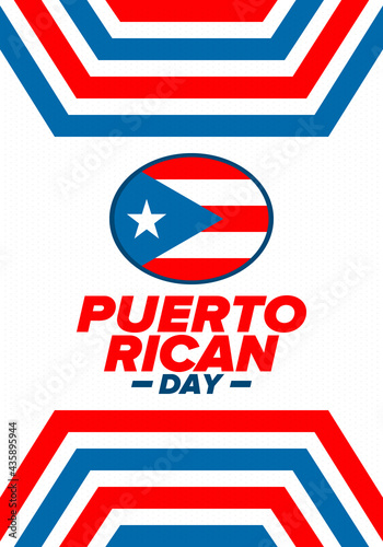 Puerto Rican Day. National happy holiday. Festival and parade in honor of independence and freedom. Puerto Rico flag. Latin american country. Patriotic elements. Vector poster illustration