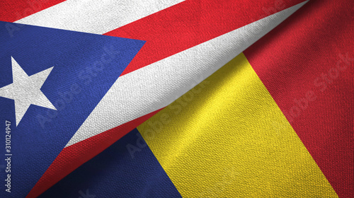 Puerto Rico and Chad two flags textile cloth, fabric texture