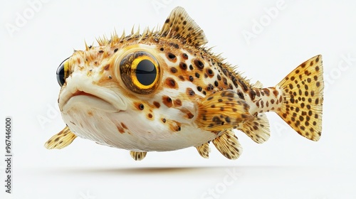 Pufferfish clipart, element, 3D illustration, realistic, isolated on white background