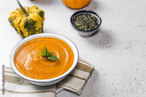 Pumpkin cream on bowl