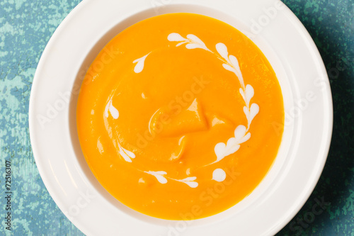 soup, pumpkin, halloween, old, spoon, food, meal, table, bowl, brown, yellow, orange, traditional, vegetable, tasty, frame, creamy, copy space, wooden, textured, cream, blue