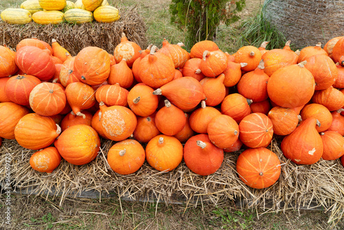 pumpkins background, round orange l pumpkins at patch at farm
