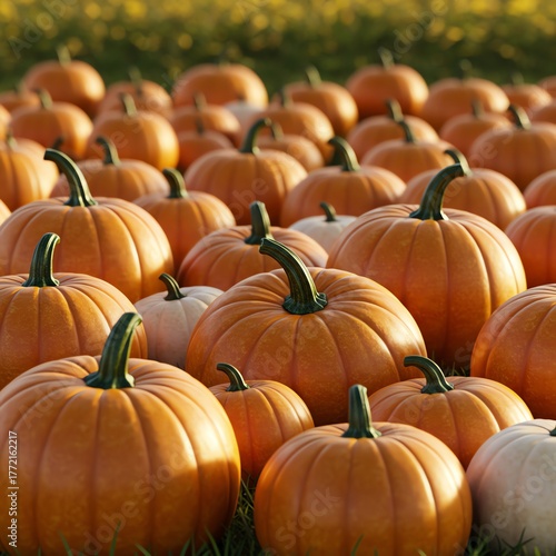 pumpkin, field, harvest, autumn, orange, sunset, glowing, fall, crop, vegetable, produce, seasonal, decoration, farm, agriculture, garden, ripe, abundance, warm, gold, nature, still, group, collection, landscape, background, growing, display, arrangement, vibrant, colourful, fresh, healthy, celebration, festive, gathering, harvesting