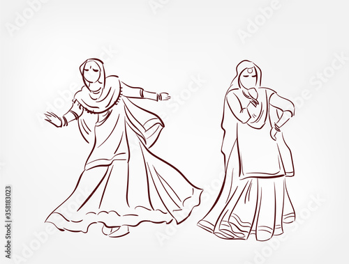 Punjab state India ethnic indian woman girl dance traditional sketch isolated design element