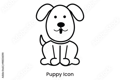 Puppy dog line art icon, silhouette, cartoon dog vector illustration. Cute puppy icon, vector, silhouette. Pet shop logo, vector illustration. Pet shop logo design.