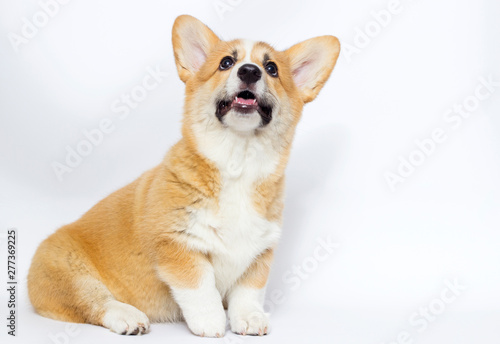 looking up, white, puppy, welsh, cute, dog, sideway, colours, 1, breed, animal, shot, mammal, purebred, beautiful, background, looking, small, look, lovely, posing, pet, alone