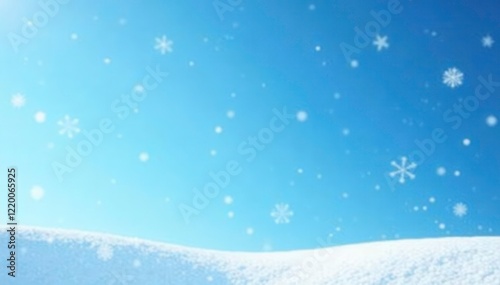 Pure white snowflakes fall through a clear blue sky with no clouds, cold, serene