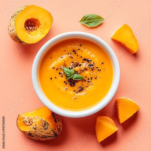 soup, food, bowl, pumpkin, vegetable, dinner, meal, lunch, healthy, plate, cream, white, vegetarian, parsley, tomato soup, orange, nobody, epicure, bread, cooked, pumpkin soup, dish, carrot, harvest, autumn, thanksgiving, oil, tomatoes, squash, hot
