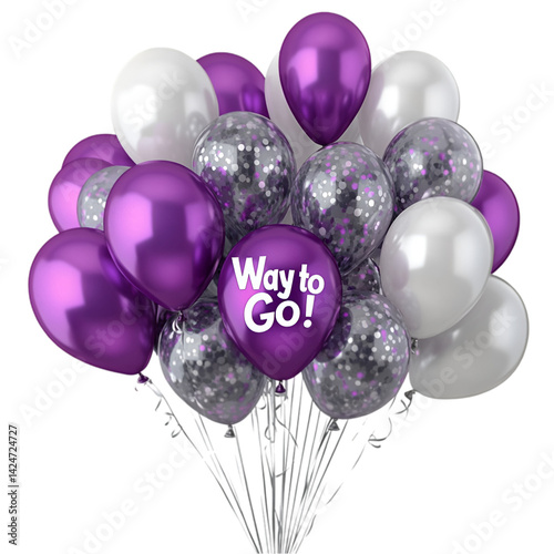celebration, achievement, success, congratulation, encouragement, motivation, purple, white, silver, grey, glistering, shiny, glossy, festive, joyful, happy, birthday, anniversary, graduation, accomplishment, event, party, background, isolated