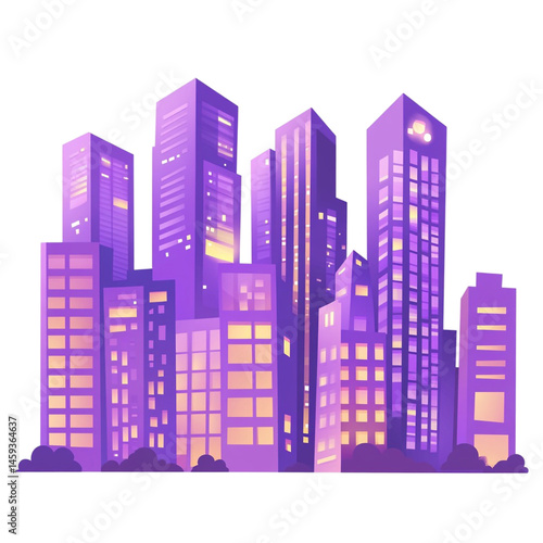 Purple city skyline at night illuminated buildings cityscape urban scene