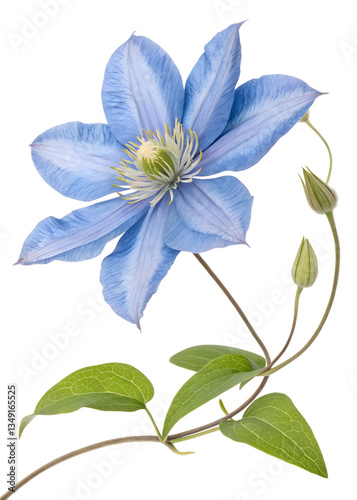 purple clematis flower, close-up, isolated on white background