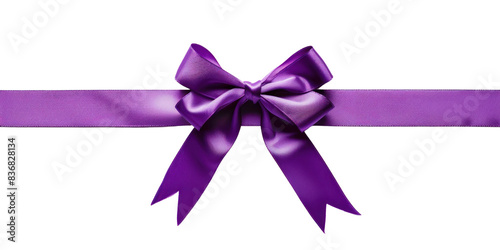 Purple color satin ribbons and bow isolate on transparent png. Holiday Edition, Ribbon decorative shiny.