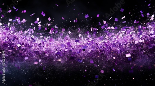 purple, confetti, explosion, background, dark, celebration, party, festive, joy, vibrant, colours, splash, burst, glistering, sparkle, shine, texture, abstract, design, element, graphic, image, photo, visual, art, dynamic, energy, movement, flying, falling, scattered, piece, fragment, dramatic, intense, magical, mystical, dreamy, rich, deep, shadow, light, contrast