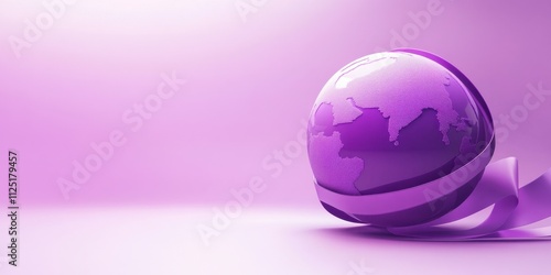 Purple Earth Globe Wrapped in Ribbon A 3D Render of Global Unity and Peace