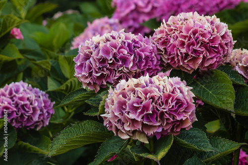 purple hortensia flowers in bloom