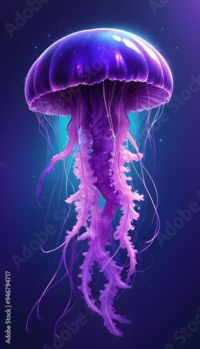 Purple Jellyfish Under Water Painting Beautiful Ocean Animal Background Graphic Design