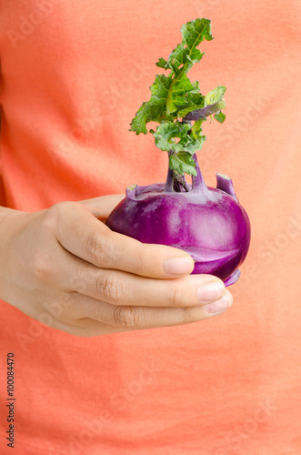 kohlrabi, purple, raw, root, vegetable, cabbage, food, fresh, hand, healthy, hold, leaf, natural, nature, nutrient, organic, vegetarian