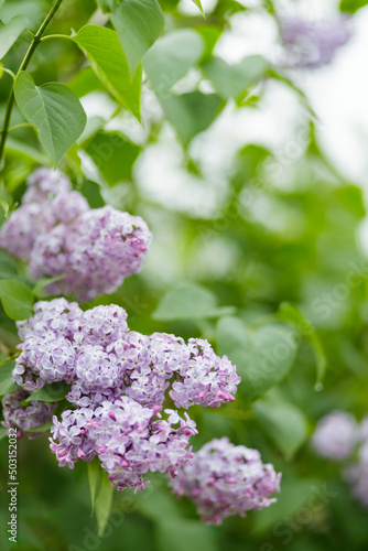 Purple lilac flowers on a blurred background. Lilac bush blossom. Spring concept