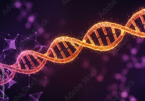 Purple orange yellow DNA double helix structure or molecule. Gene therapy, CRISPR gene editing. Treatment of blood cancer and hereditary diseases. Eco friendly technology. Copy space.