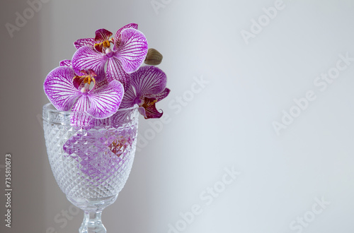orchid, wall, template, exotic, light, purple, orchid, plant, flower, nature, blossom, pink, background, tree branch, bouquet, floral, tropical, glasses, bloom, vase, beauty, phalaenopsis, elegance, decoration, decorative, beautiful, stem, blooming, flora, romantic, white, bright, colours, table
