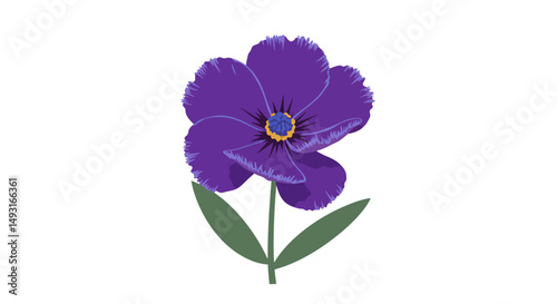 purple flower, flower, violet, floral, bloom, isolated, graphic, digital artwork, illustration, botanical, nature, plant, artistic, design, colourful, high-coloured, detailed, single, still life, spring, summer, decorative, pattern, beauty, elegant, pixelated, simple, vibrant, single flower, purple, green leaf, stem