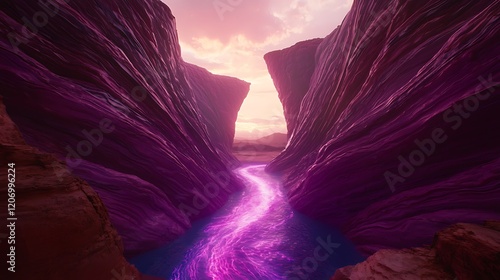 river, canyon, purple, sunset, landscape, fantasy, vibrant, game, design, desert, nature, rock, mountain, flowing, water, glow, alien, surreal, science fiction, digital, art, abstract, background, texture, scene, image, illustration, environment, earth, space, cosmic, mystic, magical, dream, colours, light, beauty, power, energy, adventure, explore, journey, path, mysterious