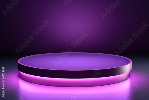 purple round round stand mock up. Glossy round podium on table counter