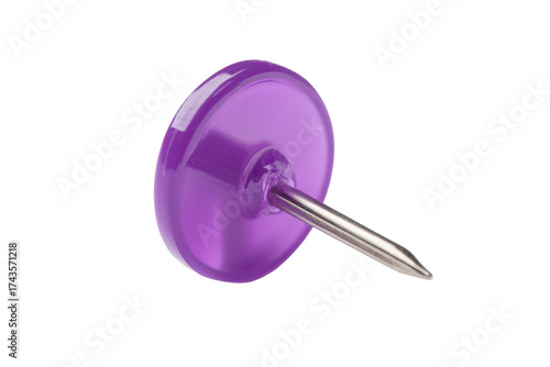 Purple thumbtack isolated on transparent background. Purple push pin isolated on white background.