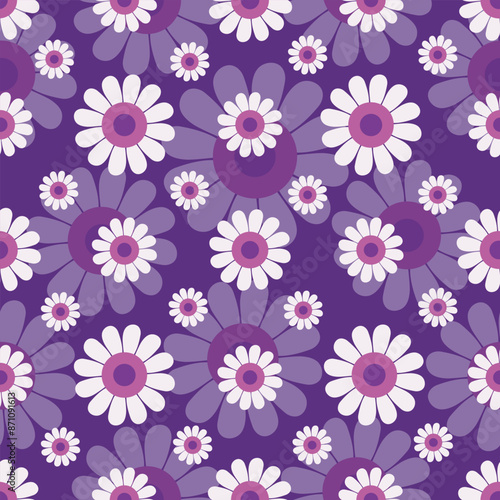 purple, white, daisy, floral, pattern, seamless, digital, paper, vector, repeat, wrapping, scrapbook, printable, textile, fabric, cool, element, royals, flower, repeating, nature, spring, design, wallpaper, flower, illustration, decoration, decor, blossom