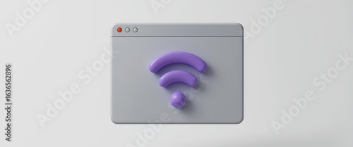 Purple Wi-Fi Icon for Internet Access on 3D Browser Window, White Background