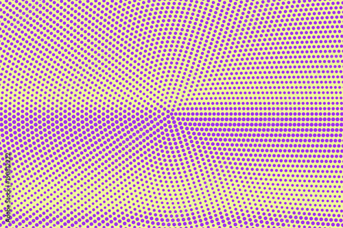 Purple yellow dotted halftone. Halftone vector background. Horizontal grungy dotted gradient.