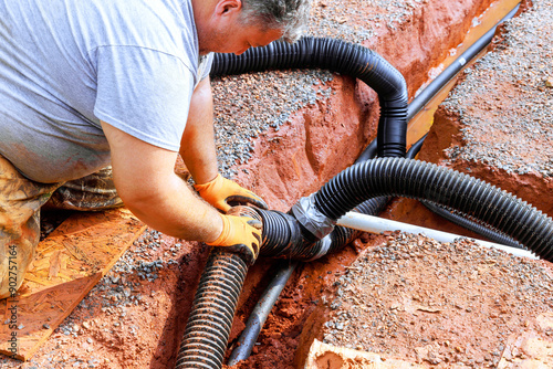 Putting in place drainage pipes for outflow of rainwater stormwater underground
