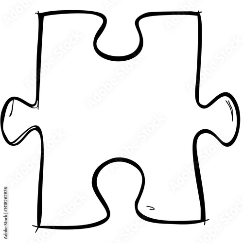 Puzzle piece in hand-drawn black line vector style