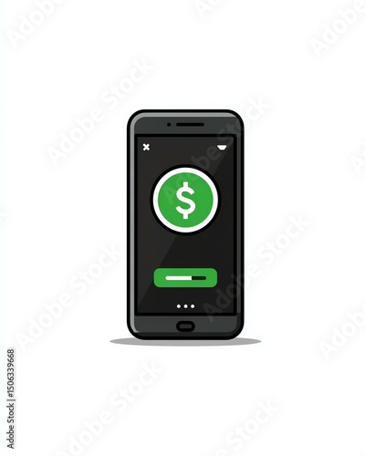 qrcode retail mobile banking payment transaction Illustration of a smartphone displaying a digital wallet with a dollar sign, representing modern financial transactions.