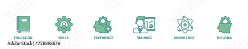 Qualification icon set flow process illustrationwhich consists of education, skills, experience, training, knowledge, and diploma icon live stroke and easy to edit