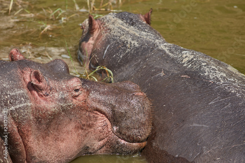 uganda, summer, east, africa, eastern, wild, national park, hippo, hippopotamus, swimming, pachyderm, bathing