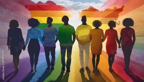 queer people on the background of the lgbt flag, shadows and silhouettes, equal rights, pride month