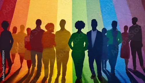 queer people on the background of the lgbt flag, shadows and silhouettes, equal rights, pride month