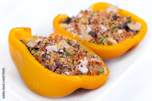 pepper, bell pepper, vegetable, meal, food and drink, cooked, half face, epicure, photo, wheat, chicken, meat, white background, studio shot