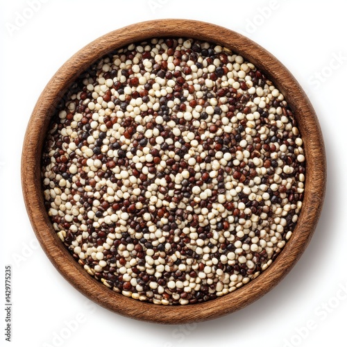 seed, bowl, grain, food, wooden, healthy, diet, nourishment, raw, tricolour, protein, ingredient, dish, cookery, natural, vegetarian, vegan, organic, closeup, texture, brown, circle, round, full, heap, pile, portion, studio, white, background