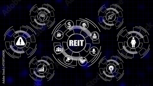 R E I T real estate investment trust concept with icons for finance business growth and risk management