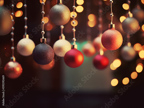 christmas, holiday, celebration, decoration, ball, ornament, bokeh, light, festive, shiny, glittering, colourful, bright, cheerful, joyful, merry, happy, season, winter, red, green, gold, silver, hanging, traditional, classic, magical, sparkling, twinkling, ambience, ball, christmas, ornament, bauble, december, card, new, design, year, vector, illustration, colours, sphere